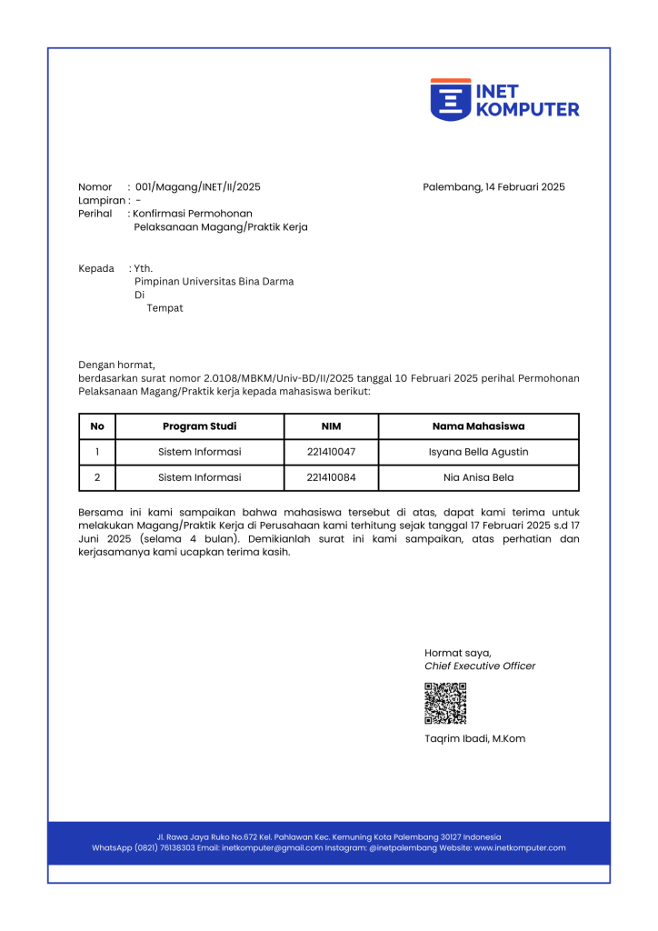 Permohonan Mahasiswa Magang UBD 1 oleh Taqrim Ibadi | Feb 14, 2025 | Magang | 0 Komentar Kirim Komentar Batalkan balasanAlamat email Anda tidak akan dipublikasikan. Ruas yang wajib ditandai *Komentar * Nama * Email * Situs Web Simpan nama, email, dan situs web saya pada peramban ini untuk komentar saya berikutnya. Beritahu saya akan tindak lanjut komentar melalui surel. Beritahu saya akan tulisan baru melalui surel. Δ